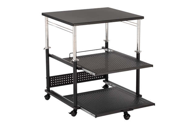 | MDF wooden top with 21mm thickness Metal tube and middle and bottom metal slide tray with black color powder coating finish 2'' lockable ball casters |
